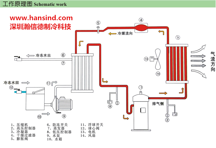 三、風(fēng)冷式冰水機的工作原理與工作原理圖,約克冰水機原理,瀚信德為你提供高清大圖,并提供最專業(yè),簡潔實用,通俗易懂的工作原理分析!