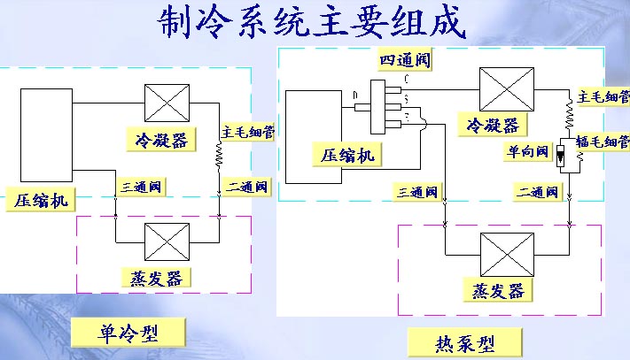 2、其工作原理與冷暖型空調(diào)機(jī)很相似,只不過我們制熱或制冷循環(huán)水時(shí),循環(huán)介質(zhì)是水,而空調(diào)的循環(huán)介質(zhì)是空氣。
